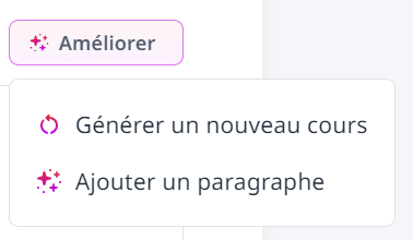 Vous pouvez désormais améliorer votre cours, qu'il ait été rédigé manuellement ou généré automatiquement. Deux options s'offrent à vous pour enrichir et optimiser votre contenu :