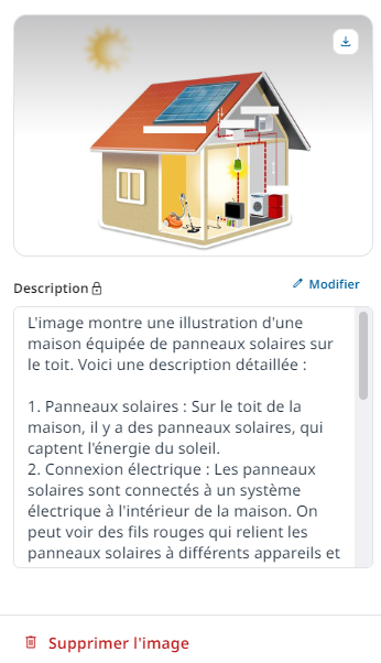 Analysez les images extraites de vos documents sources pour y associer une description. Laissez opérer la magie edtake ! L'IA d'edtake utilise automatiquement la description de vos images pour vous fournir un contenu de séquence qualitatif.