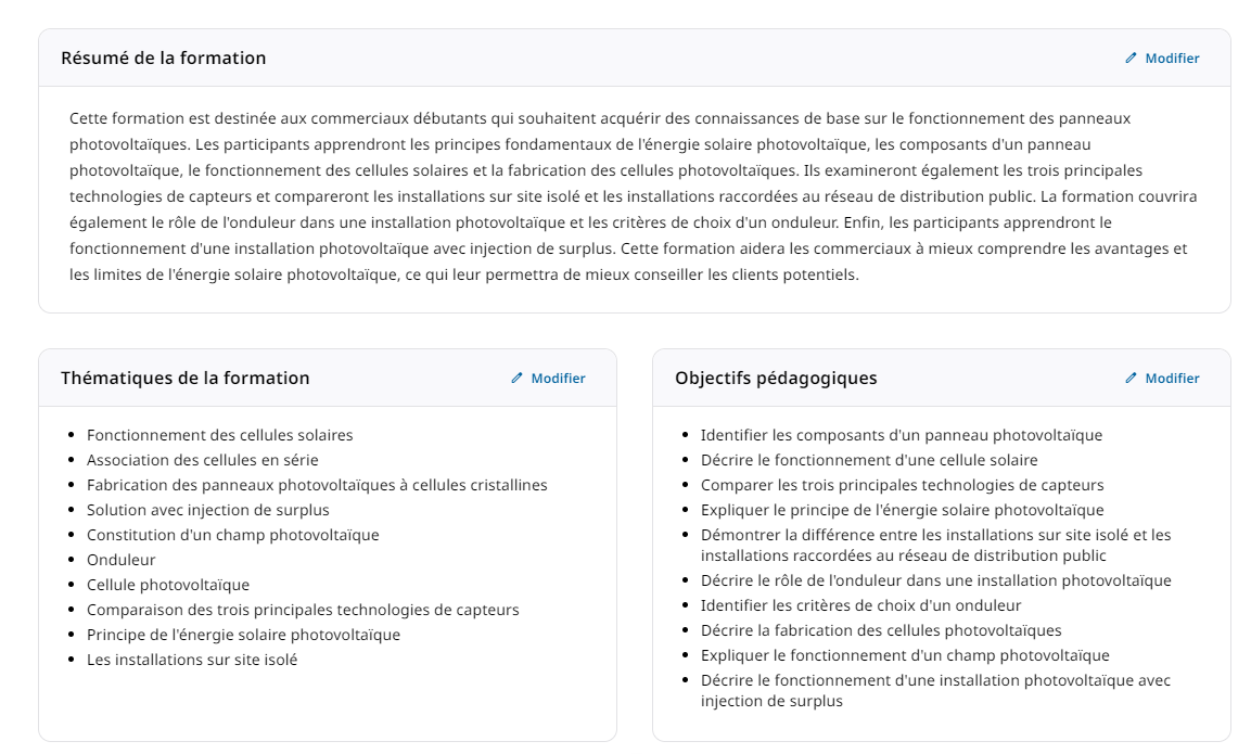 Vous l’attendiez, c’est chose faite ! Editez et ajuster les éléments de votre cadrage pédagogique à tout moment selon vos besoins. Créer du contenu n’aura jamais été aussi simple !
