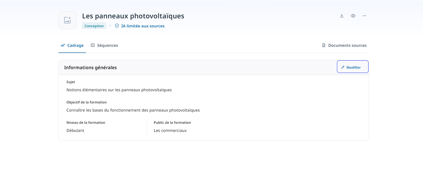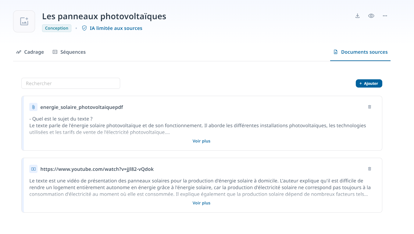 Vous pouvez facilement accéder à vos documents sources depuis votre module de formation dans un onglet dédié. L'IA s'occupe de résumer ces documents pour vous et d'en extraire les concepts clés.
