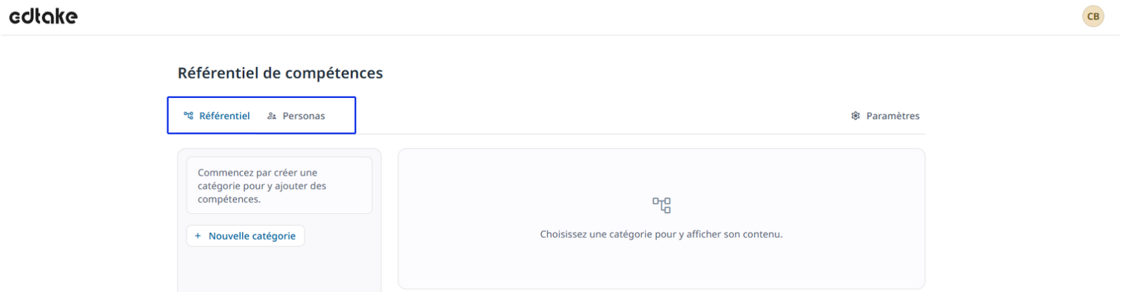- Ajoutez des compétences dans la catégorie, et/ou créez des sous-catégories pour organiser votre référentiel plus finement.