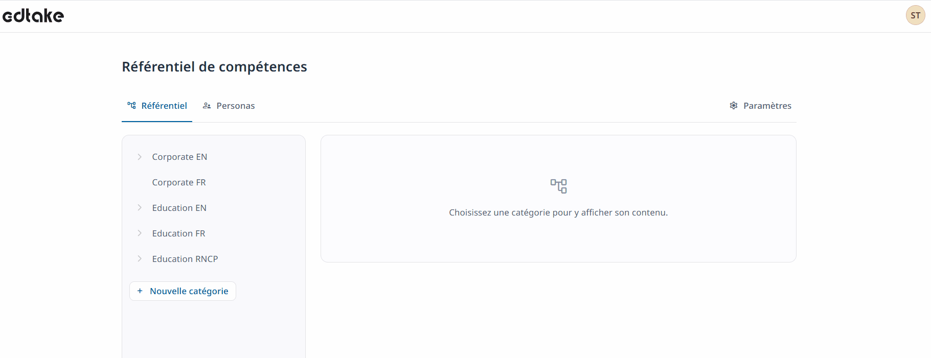 - Cliquez sur + Nouvelle catégorie pour créer un groupe de compétences.