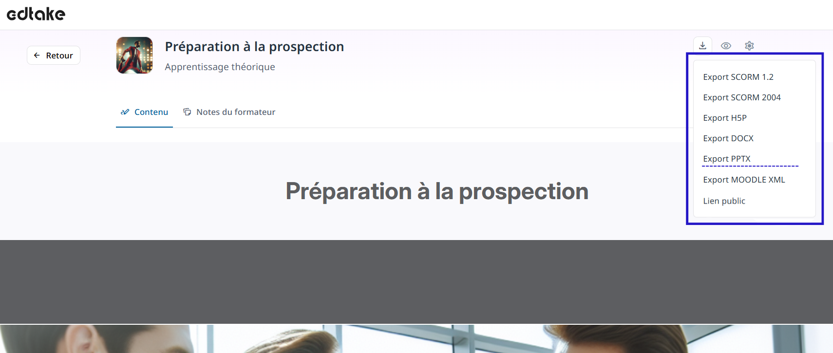 - Cliquez sur l'icône de téléchargement en haut à droite de votre module ou de votre séquence.